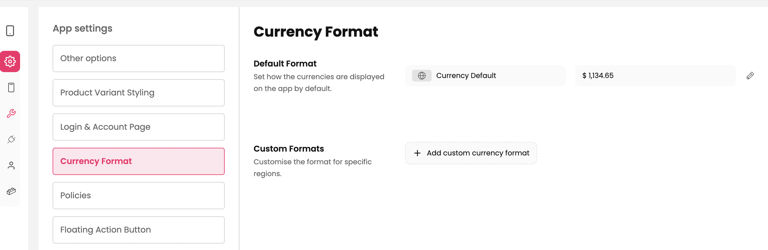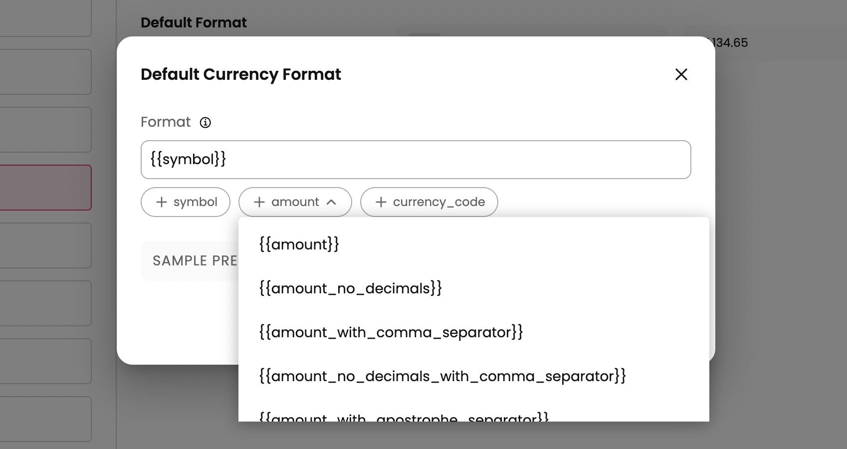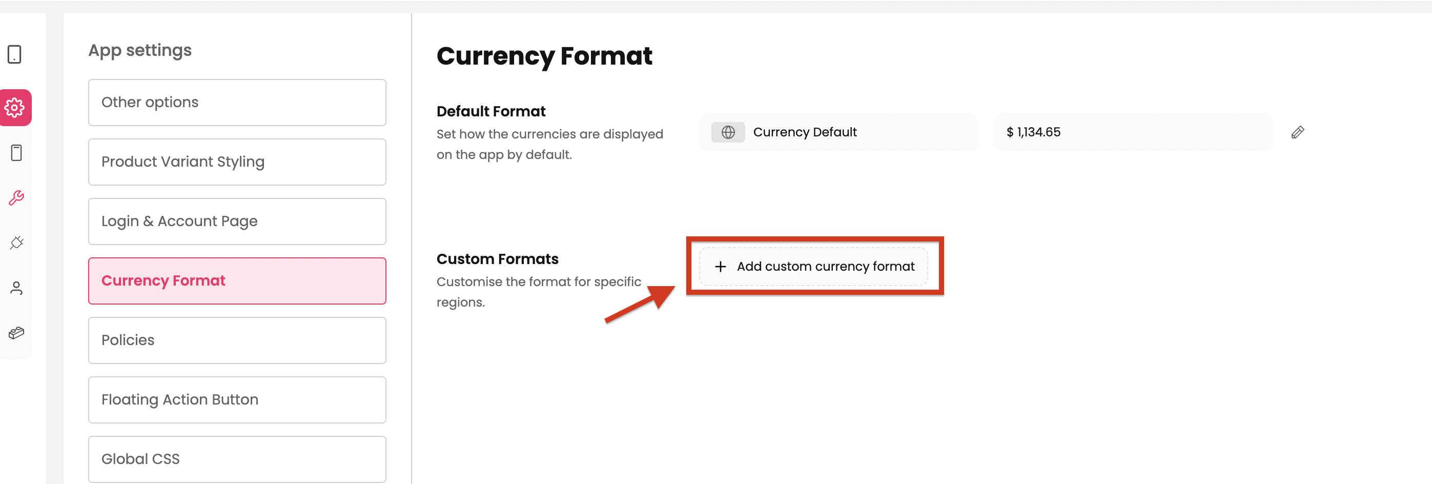 If you have multiple currencies, you can set the currency format for them by clicking on “Add custom currency format”