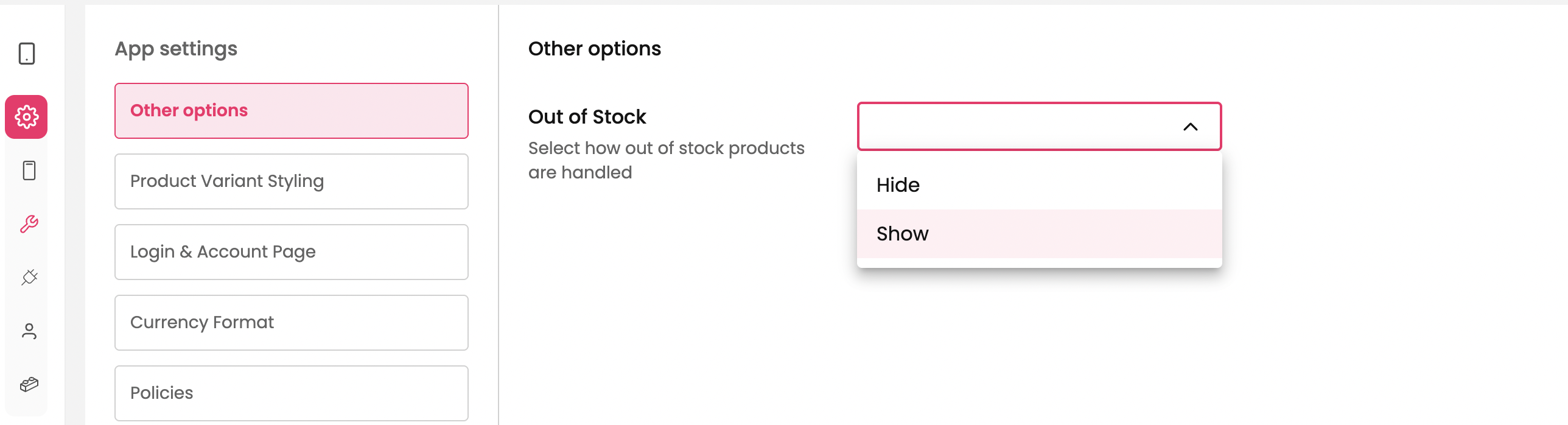 This settings helps you to decide if you want show the products whose inventory quantity is 0 across the app or hide them.