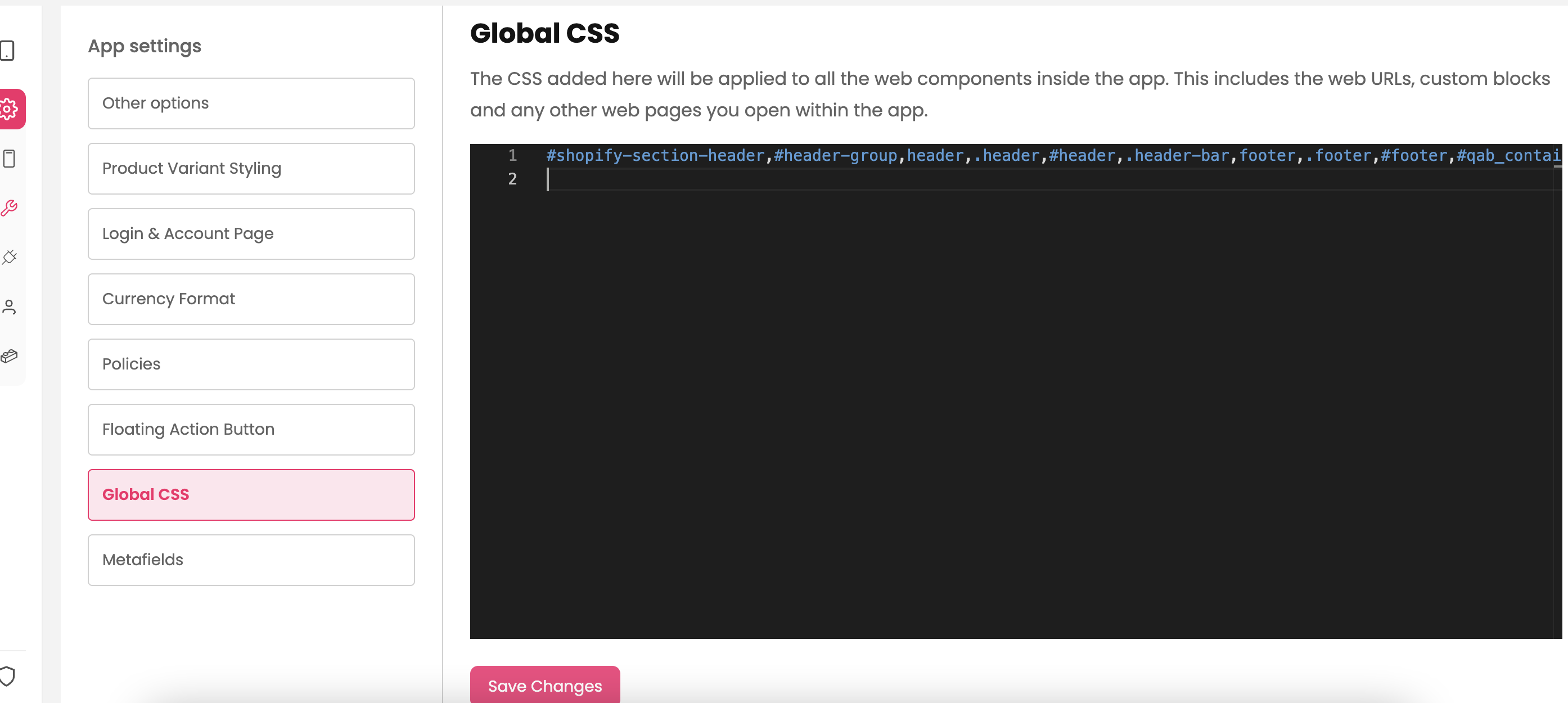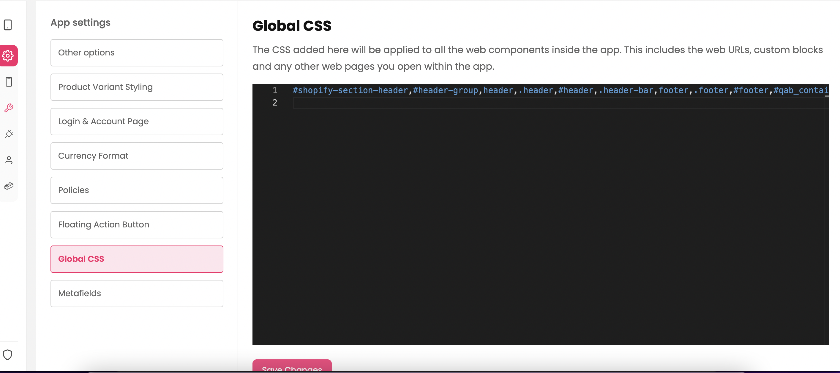 The App Settings section in the dashboard lets you configure important options that apply across your entire mobile app. Any changes made here will reflect throughout the app, ensuring a consistent experience for your customers.