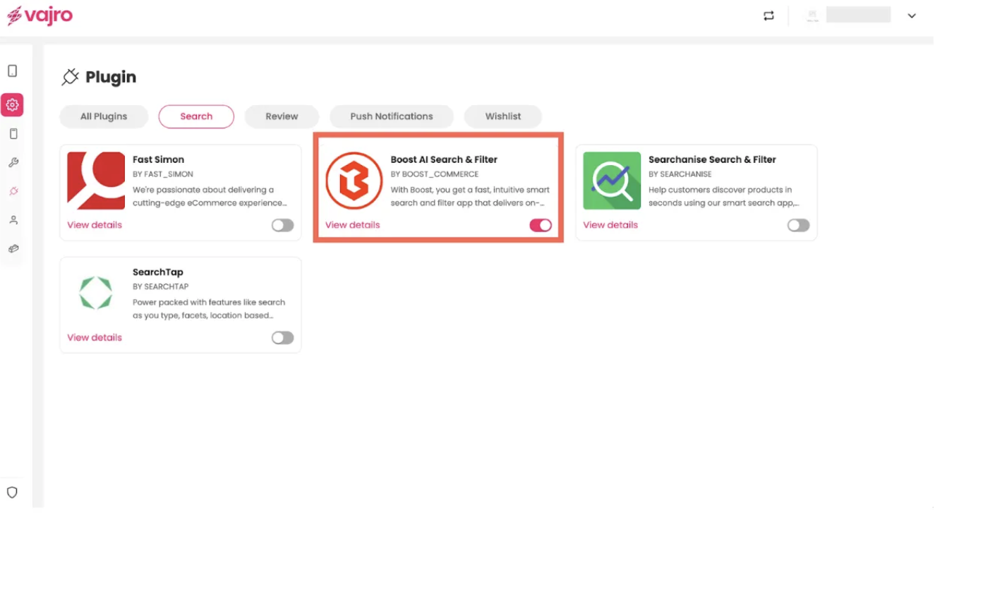 Step 2 :Under the Search category, select Boost AI search & Filter and toggle it on.