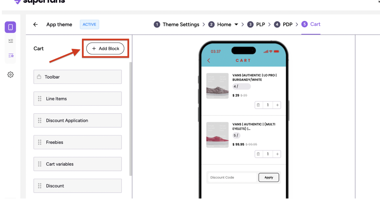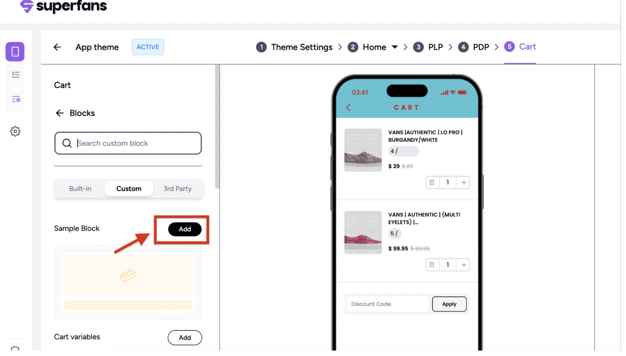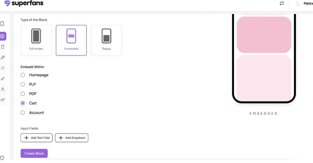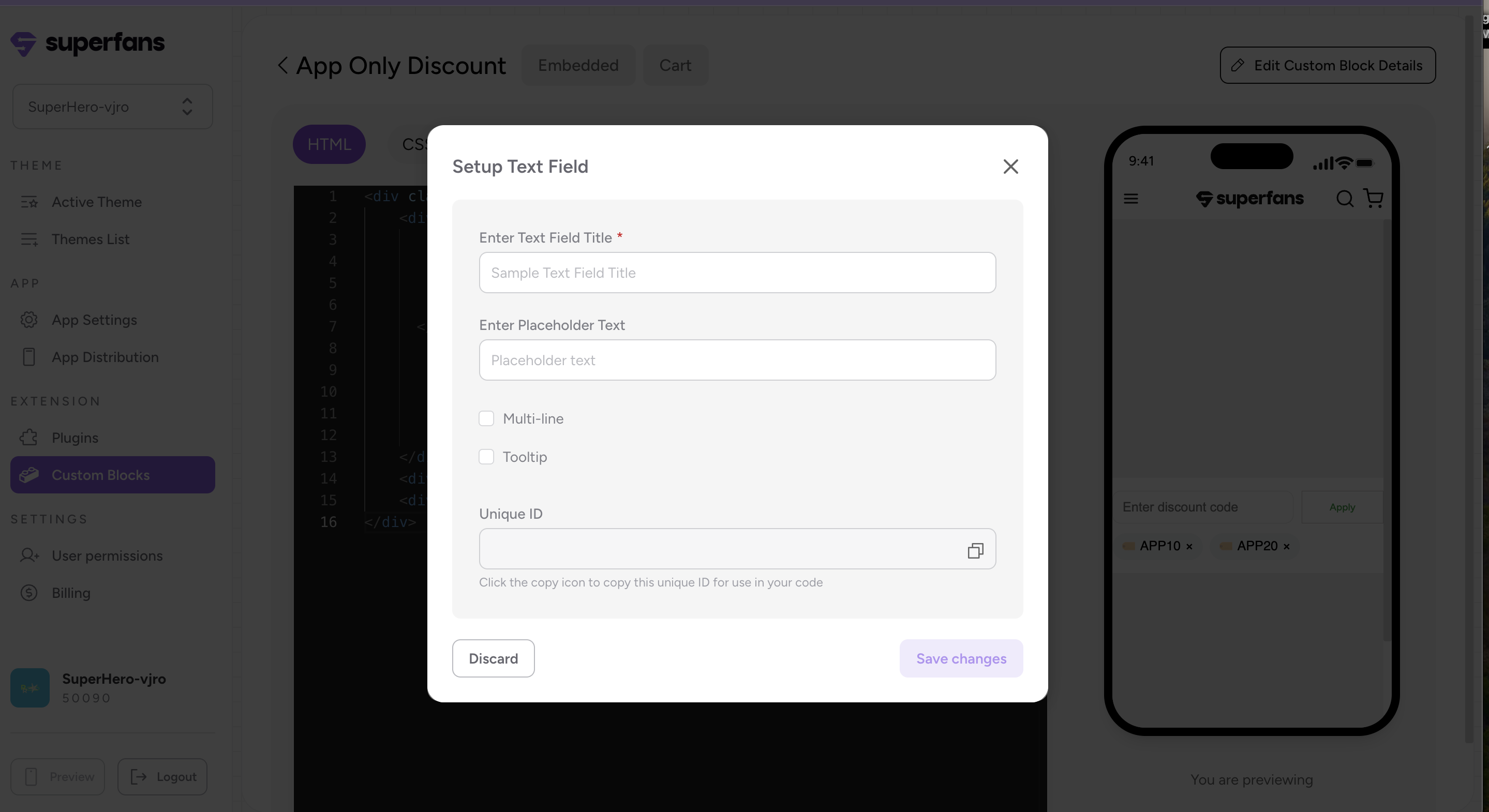 This guide walks you through creating your first Custom Block in the Superfans Low Code Builder.