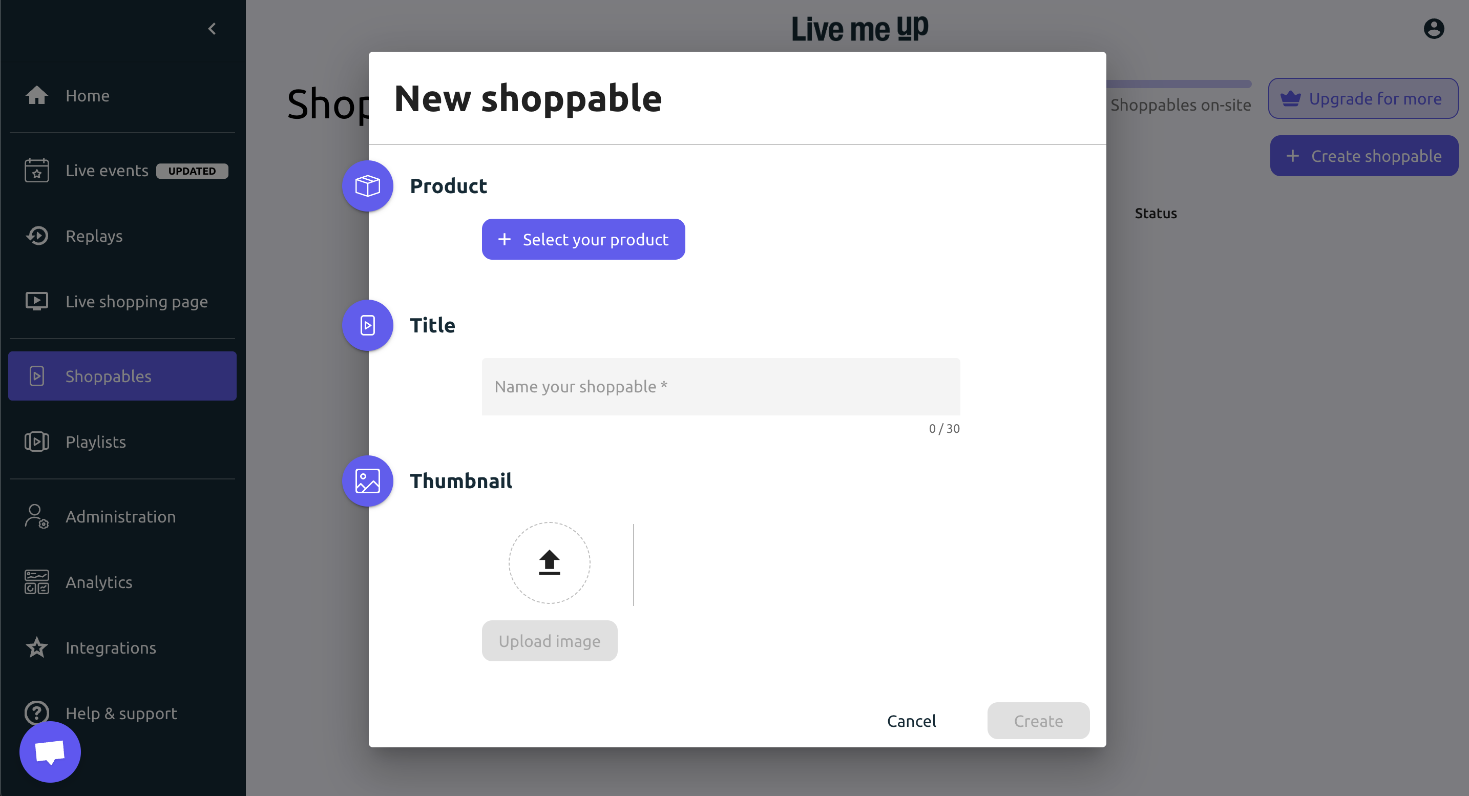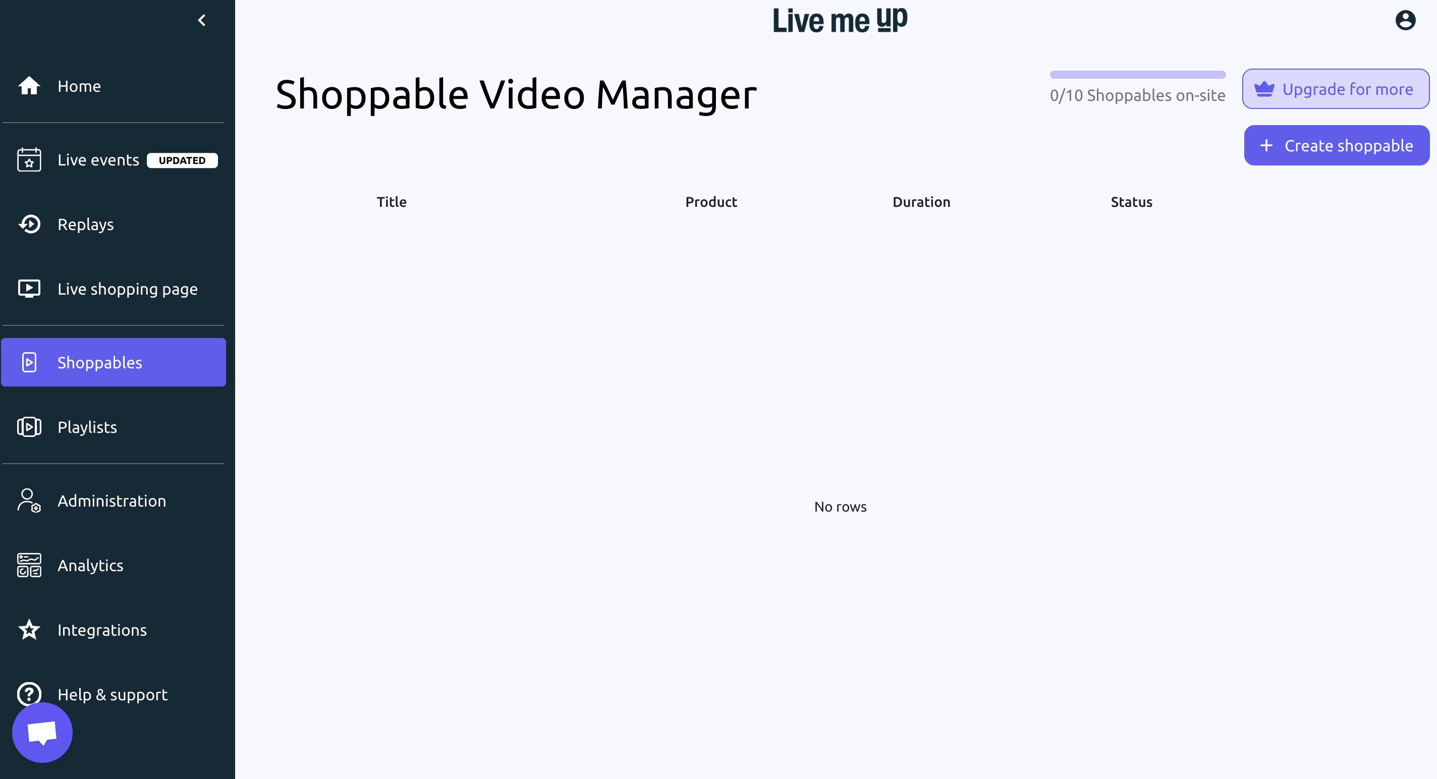 Go to Shoppables from the left-hand menu to open the Shoppable Video Manager.