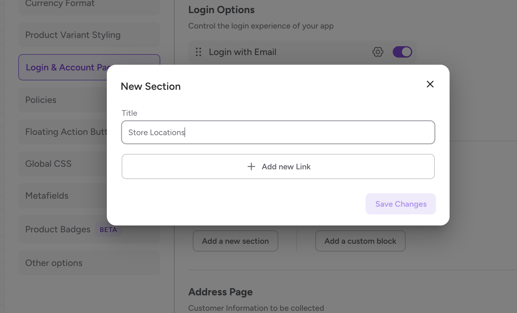 Step 2: Click on “Add New Section” CTA to create a new section for Store Switcher.