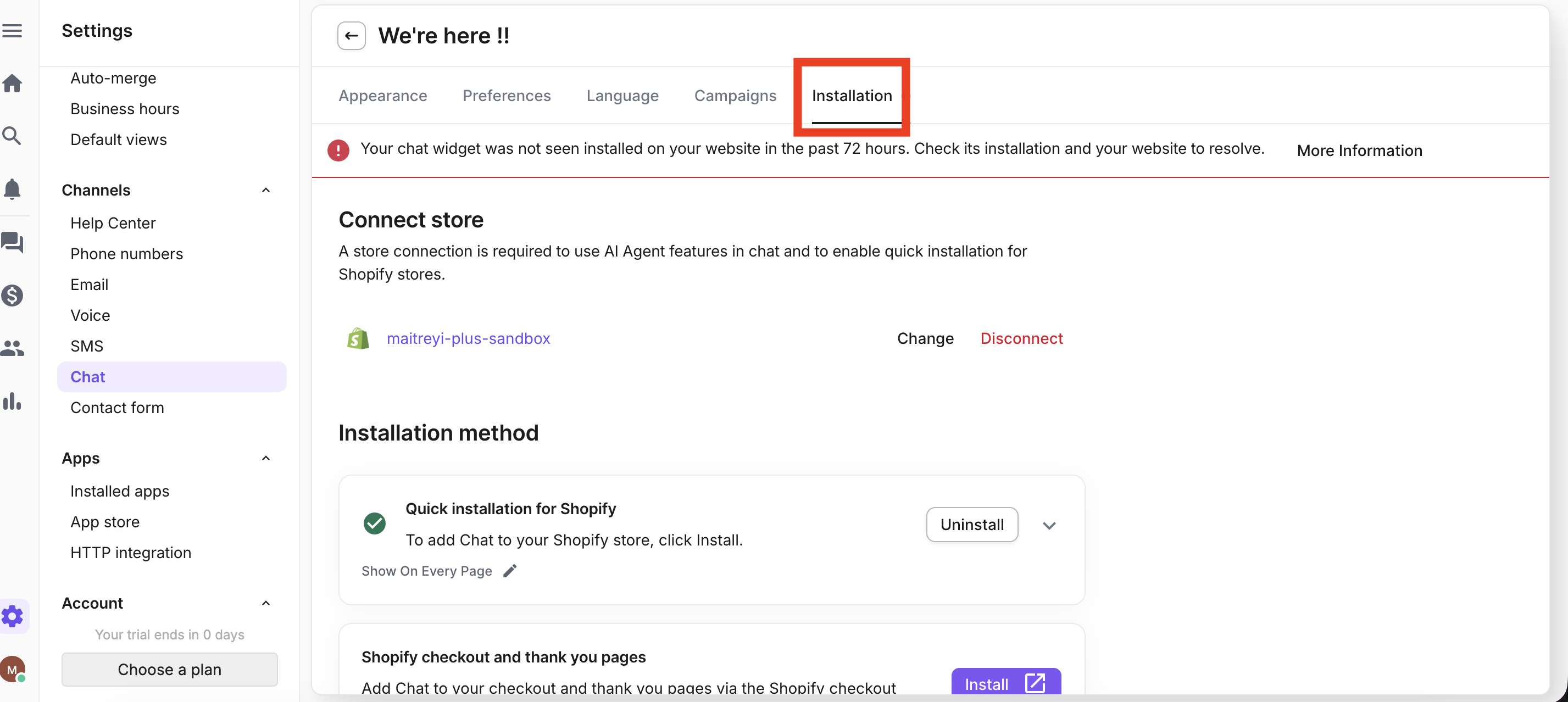 Step 5 : Navigate to the “Installation” tab of the chat.