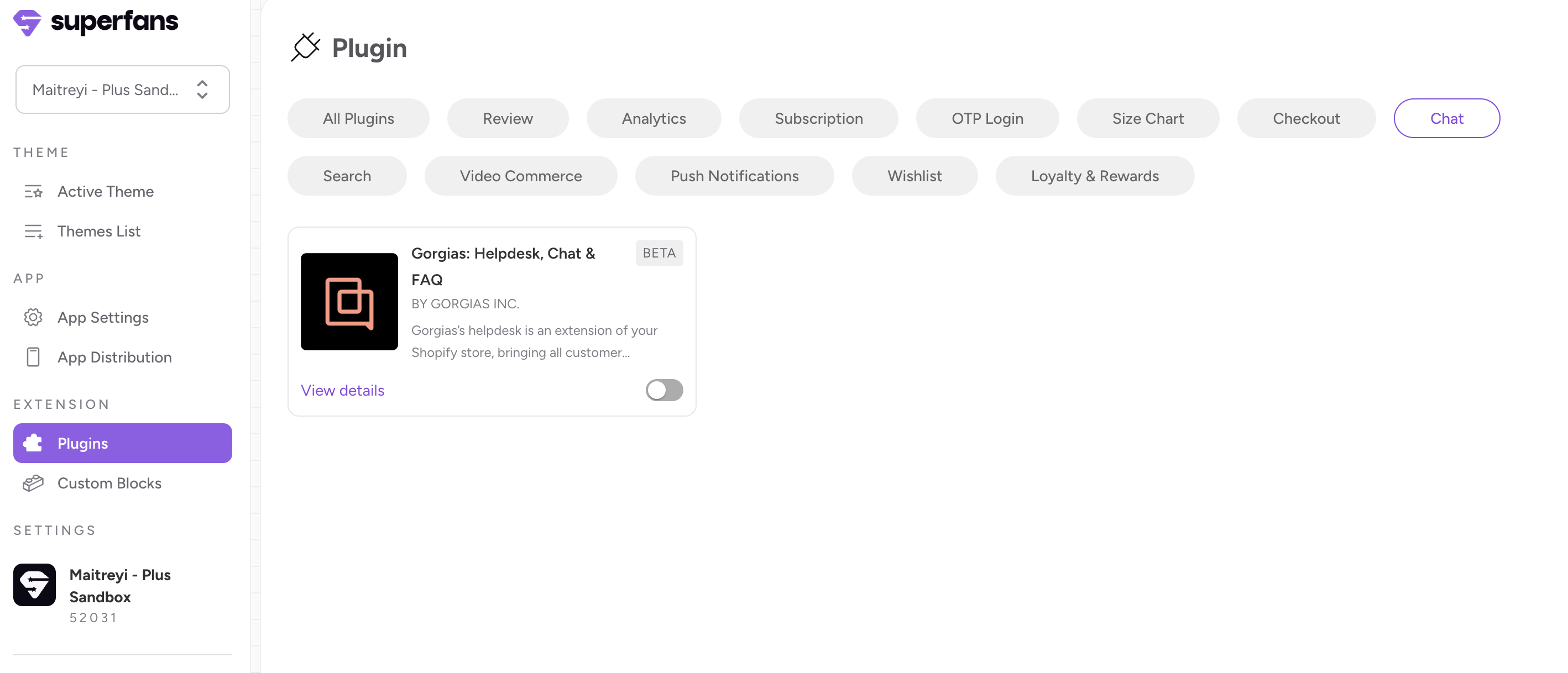 Step 2 : Select the “Loyalty & Rewards” category from top and toggle the Gorgias chat plugin.