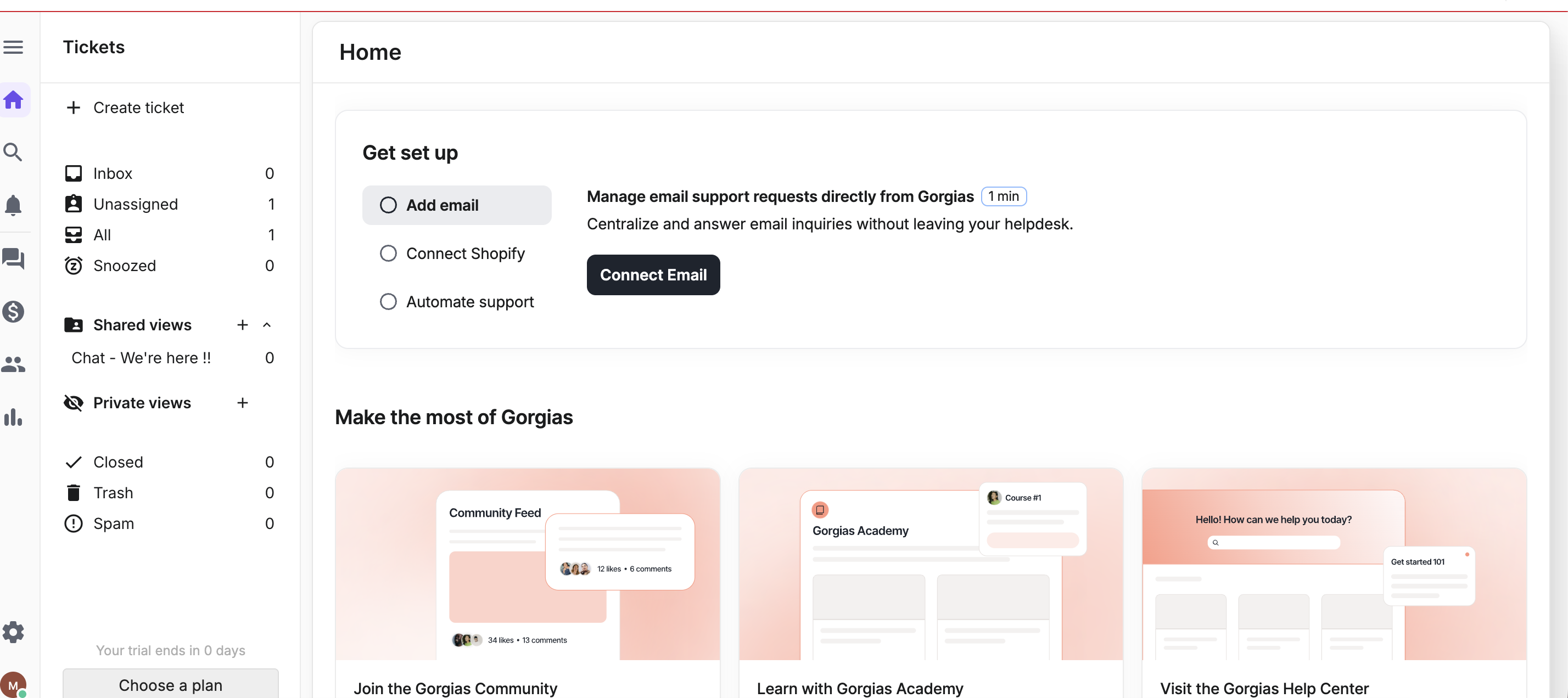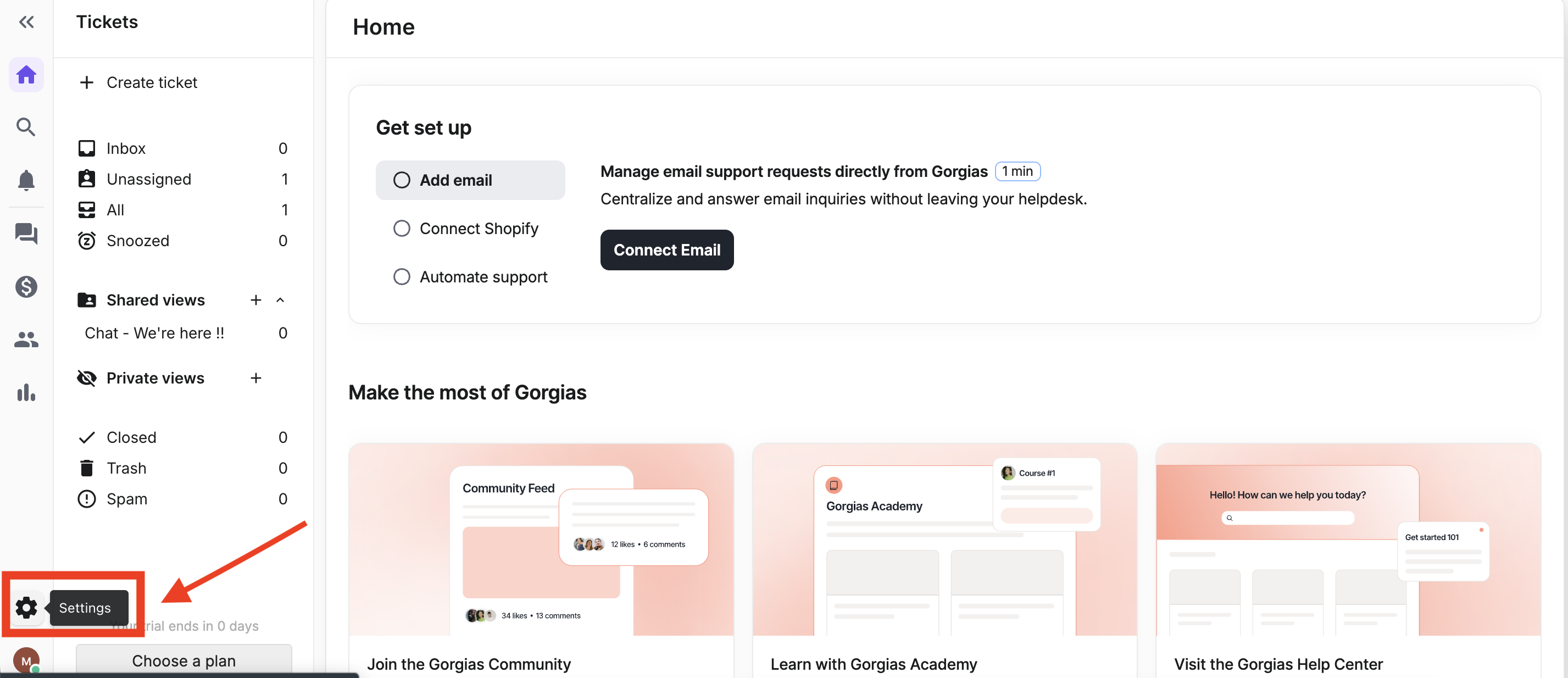 Step 2 : Provide your domain name and navigate to Gorgias helpdesk dashboard.