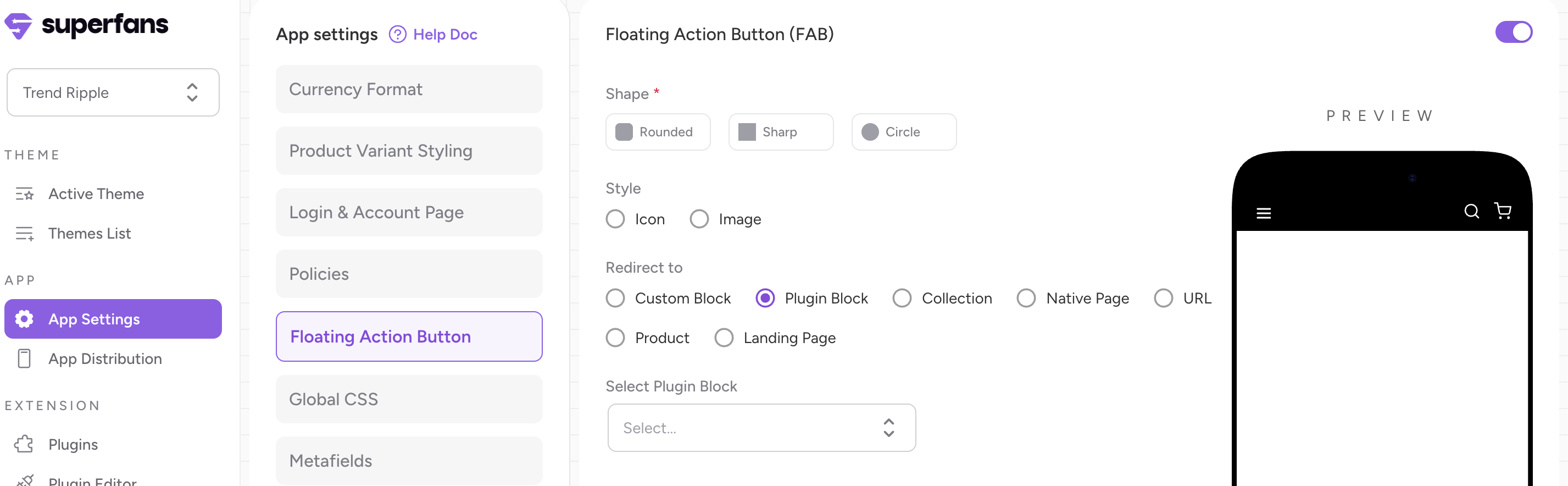 Step 1 : Navigate to the Floating Actions Button from App Settings page on the dashboard.