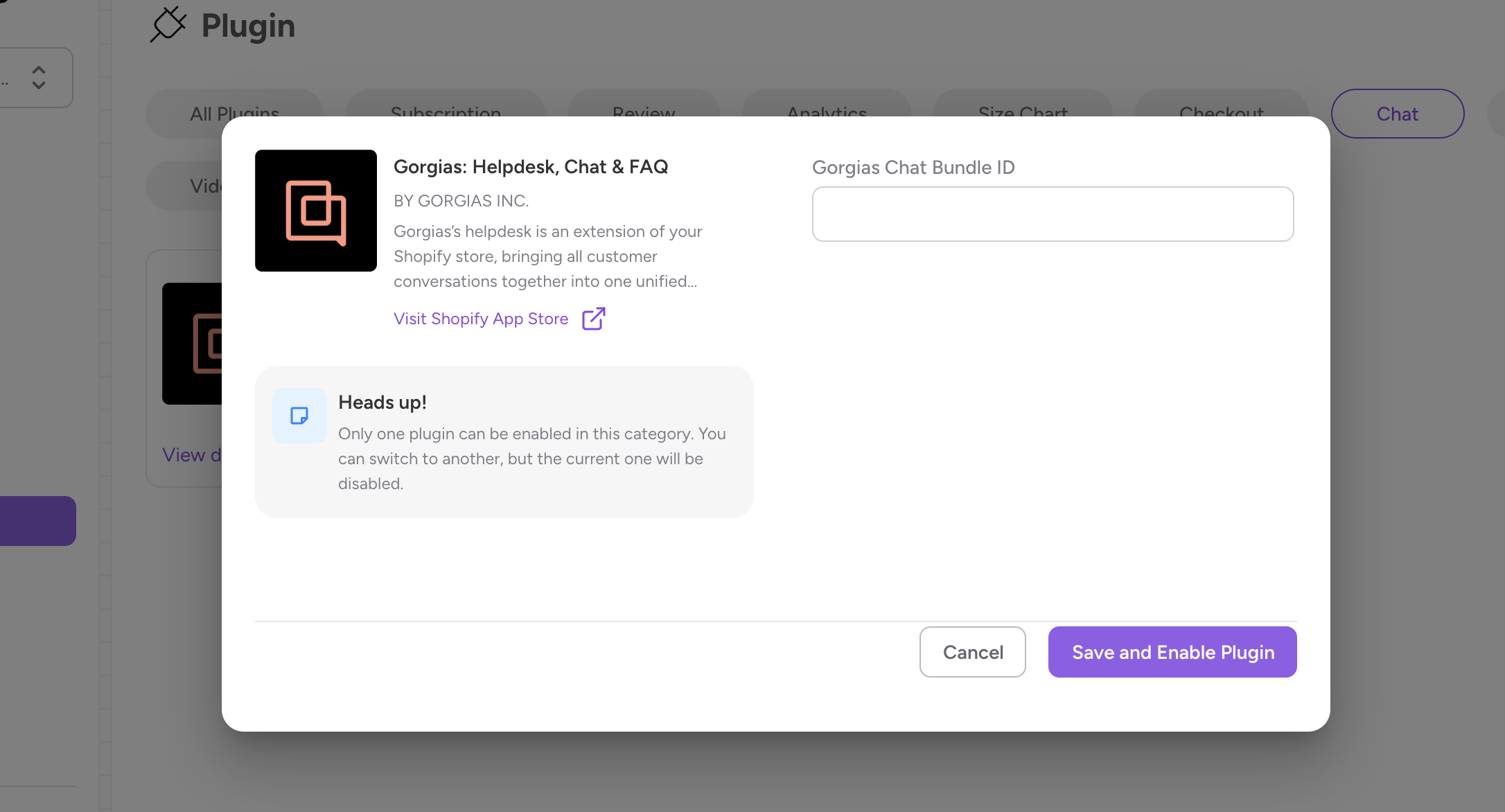 Step 3 : Provide the chat bundle ID and click on Save and Enable Plugin CTA.