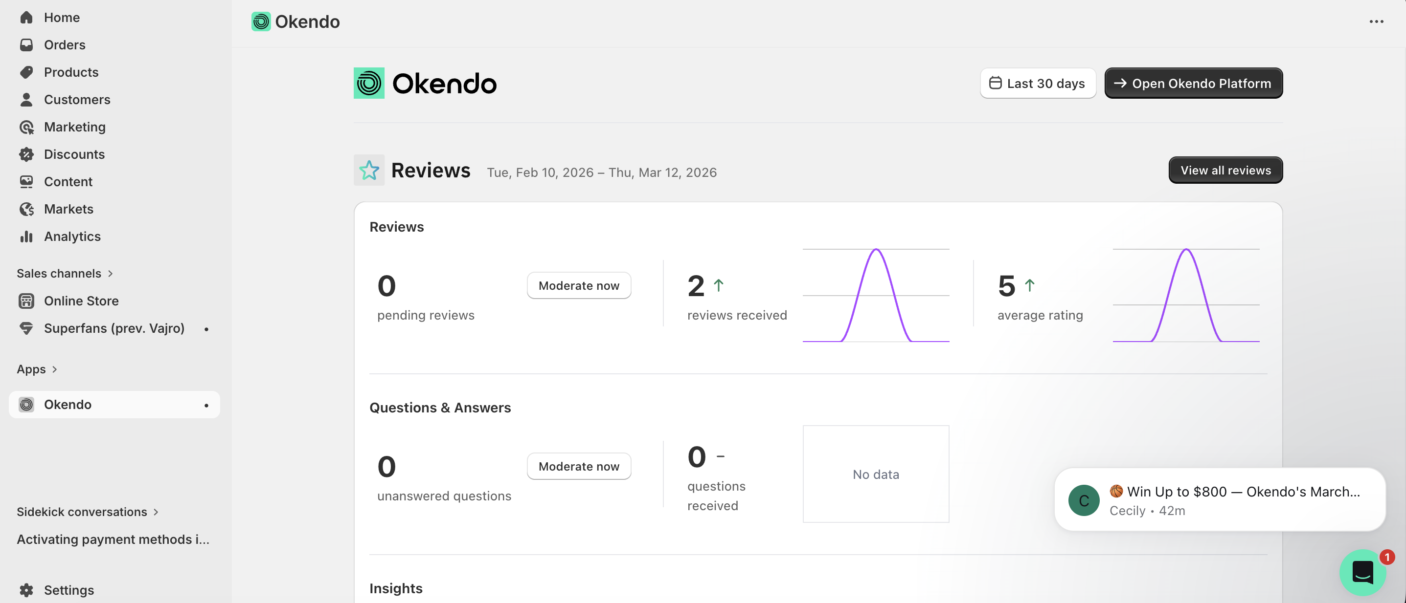 Superfans supports seamless integration with Okendo Reviews, enabling merchants to showcase product reviews and ratings directly inside their mobile app. This integration helps build trust with shoppers and improves purchase confidence by displaying authentic customer feedback on product pages.