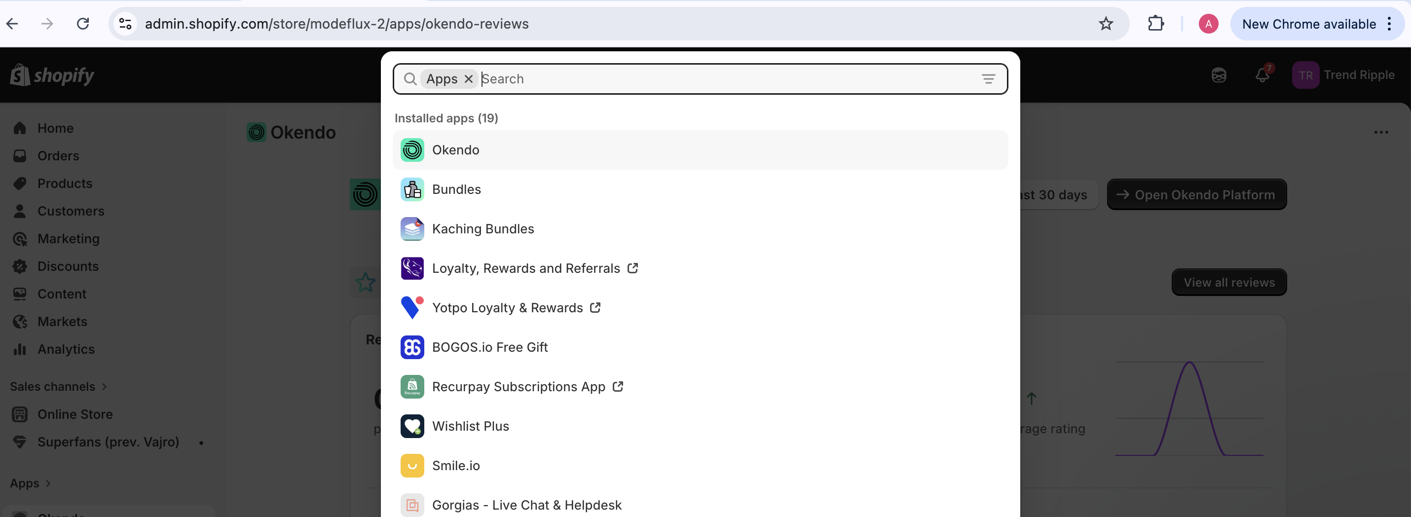 Step 1 - Go to the Okendo Reviews plugin installed on your Shopify Store from Apps Section.