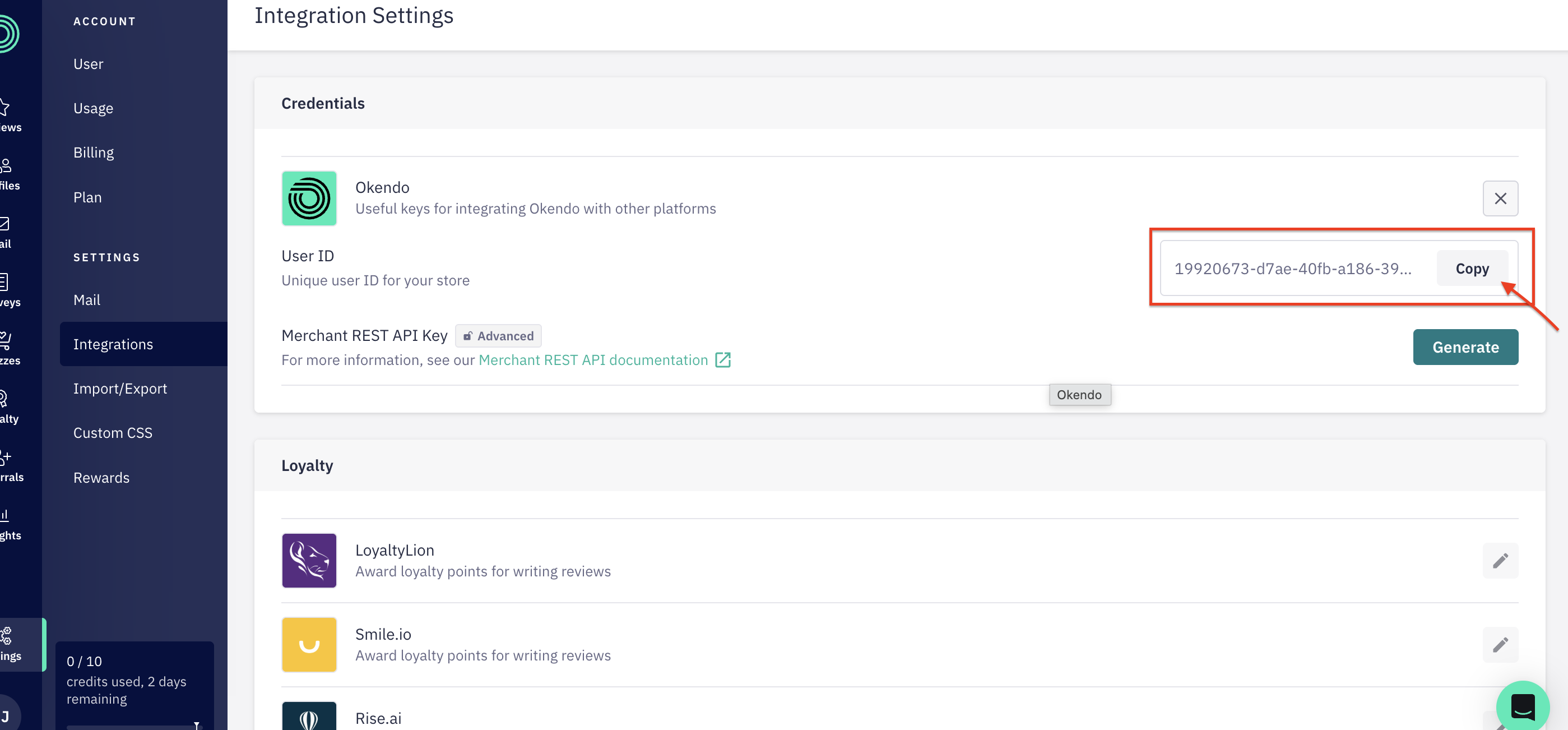 Okendo User ID and Accent Color (brand color) for the Reviews widget
