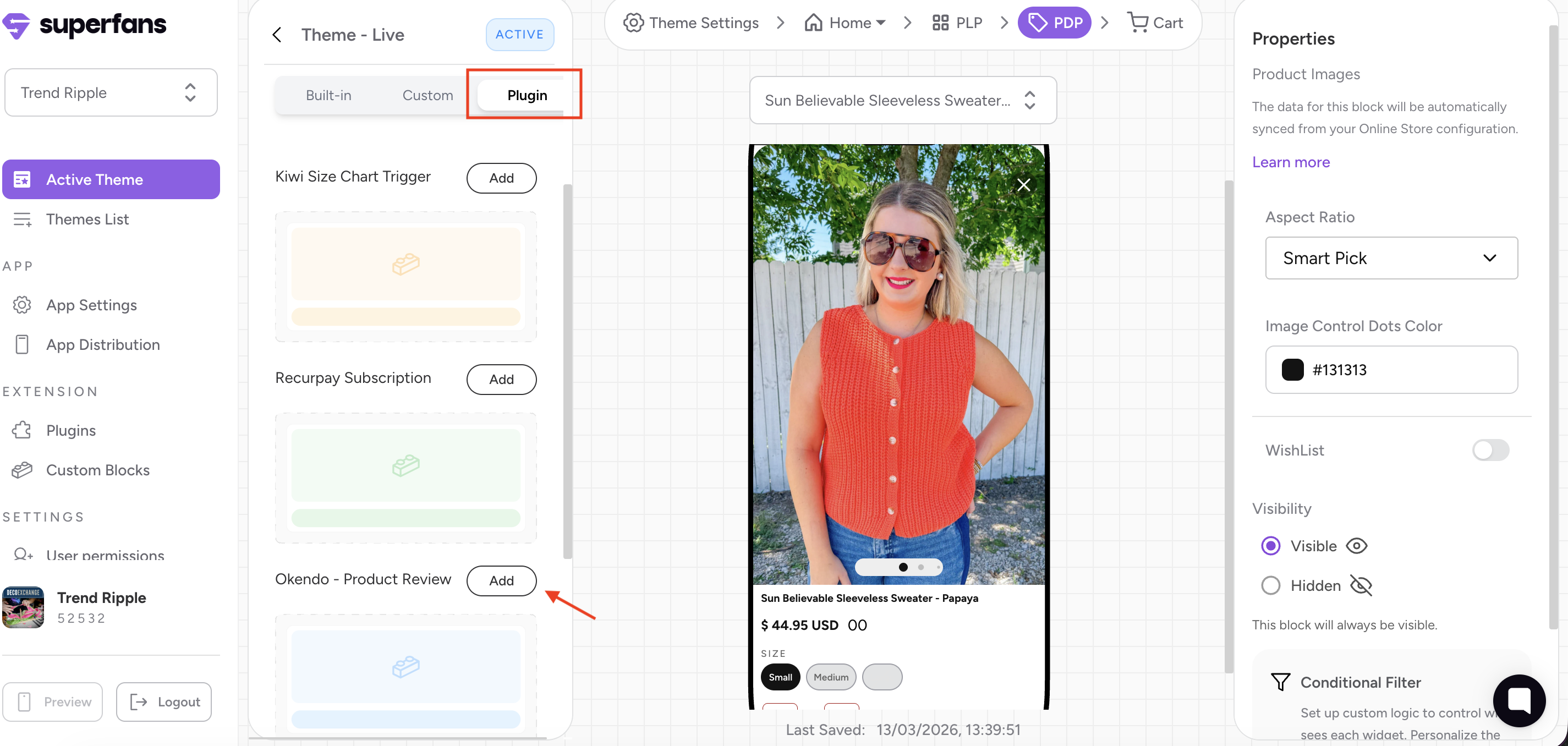 Step 4 - Select the block type as “Plugin” and click on “Add” CTA to have the block on the Product page.
