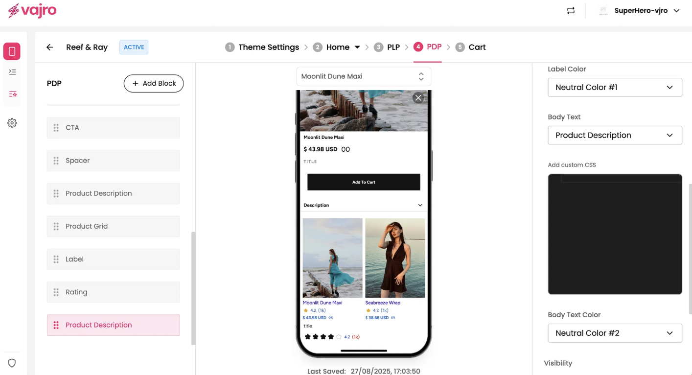 Add custom CSS: This feature allows you to add custom CSS to apply specific styles to the description block that aren't available through the standard properties panel.