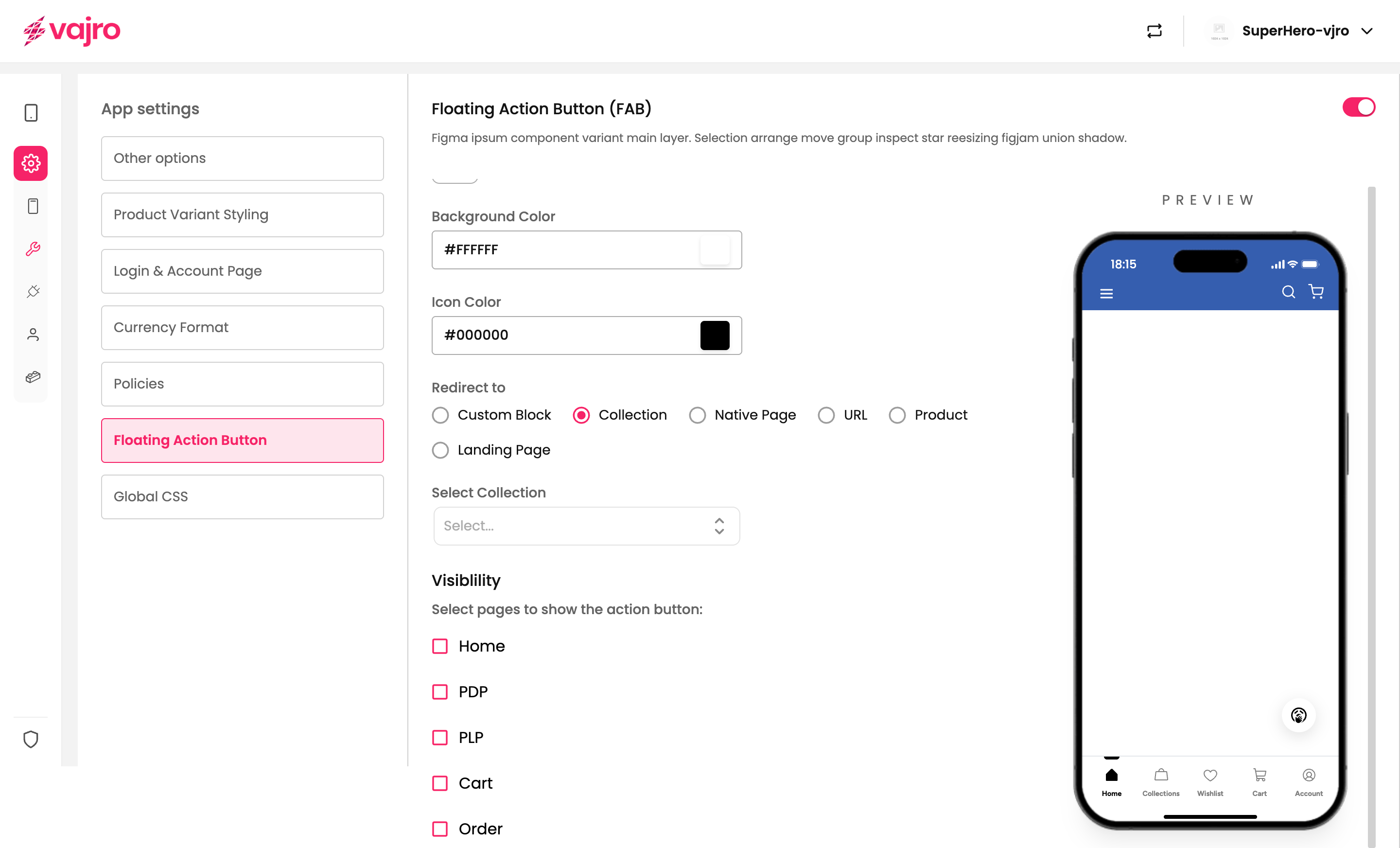 Visibility: Selecting Pages Control where your Floating Action Button appears to create a seamless user experience. By choosing specific pages, you can ensure the FAB is only shown where its action is most relevant.