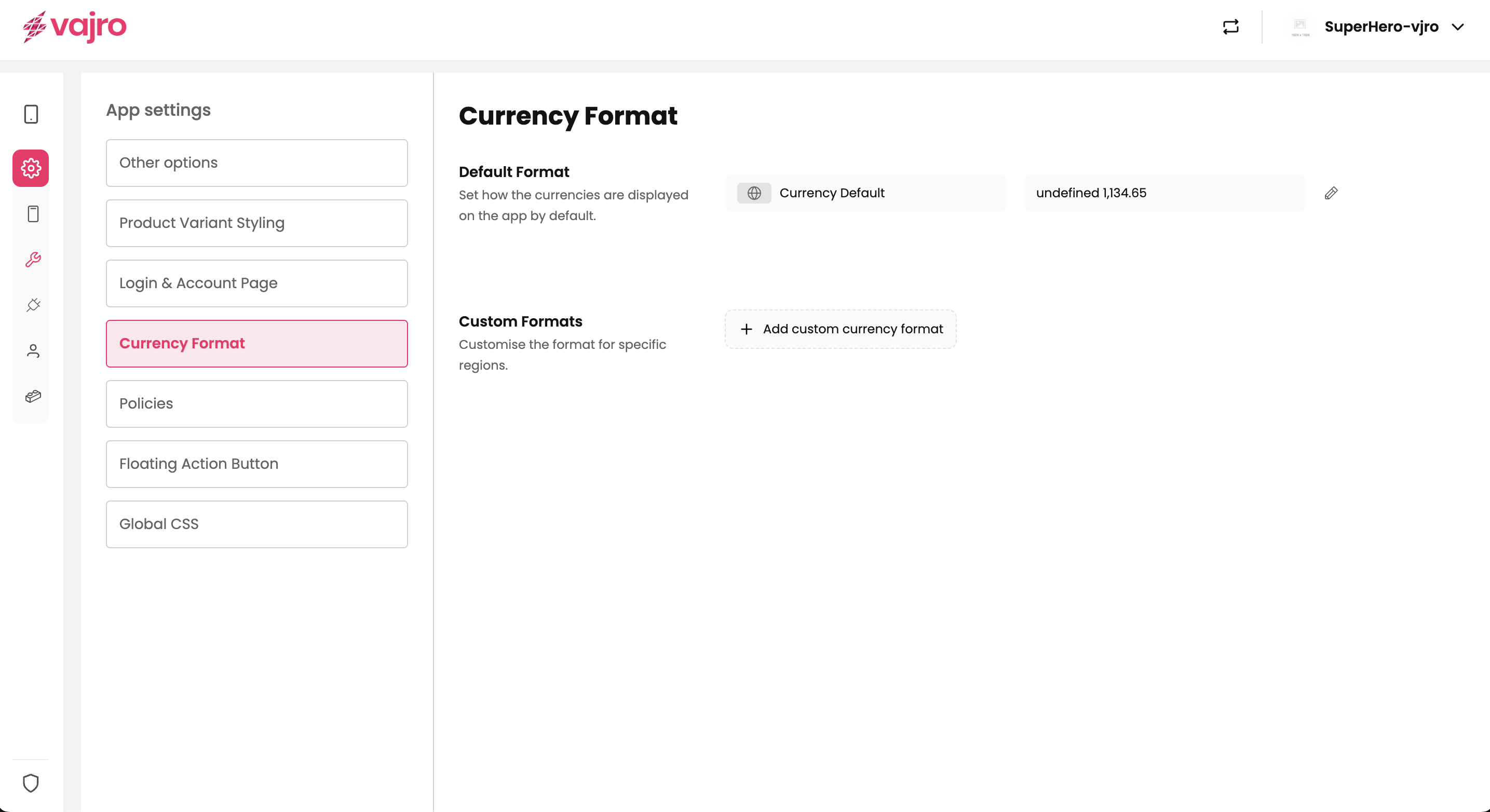 Custom Formats: Add region-specific currency formats to cater to different markets.