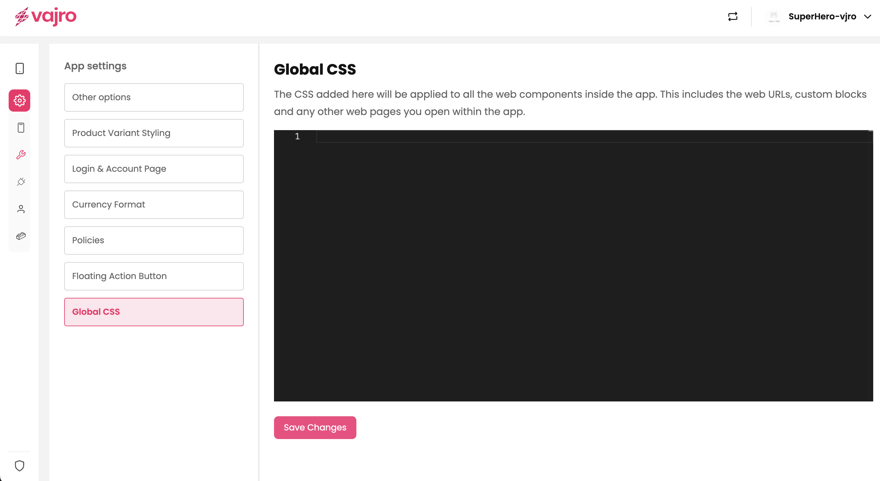 Save Changes: Click "Save Changes" to apply your new CSS rules to the app's design.