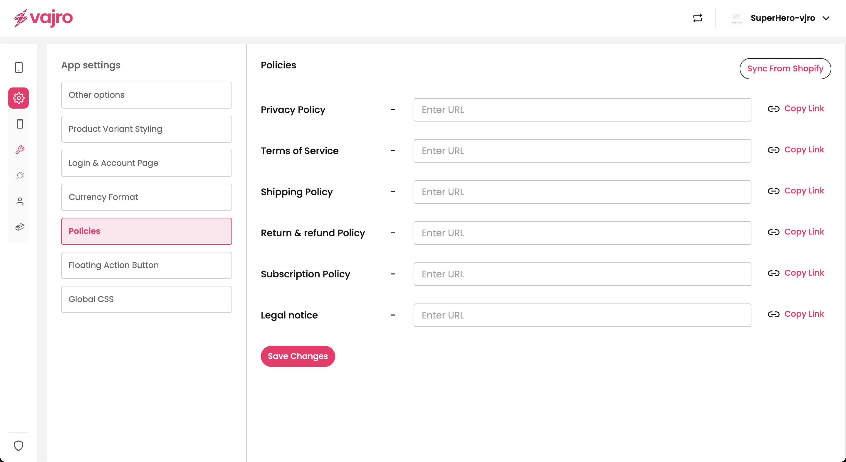 Sync from Shopify This feature allows you to instantly import your existing policies from your connected Shopify store, saving you time and ensuring consistency.
