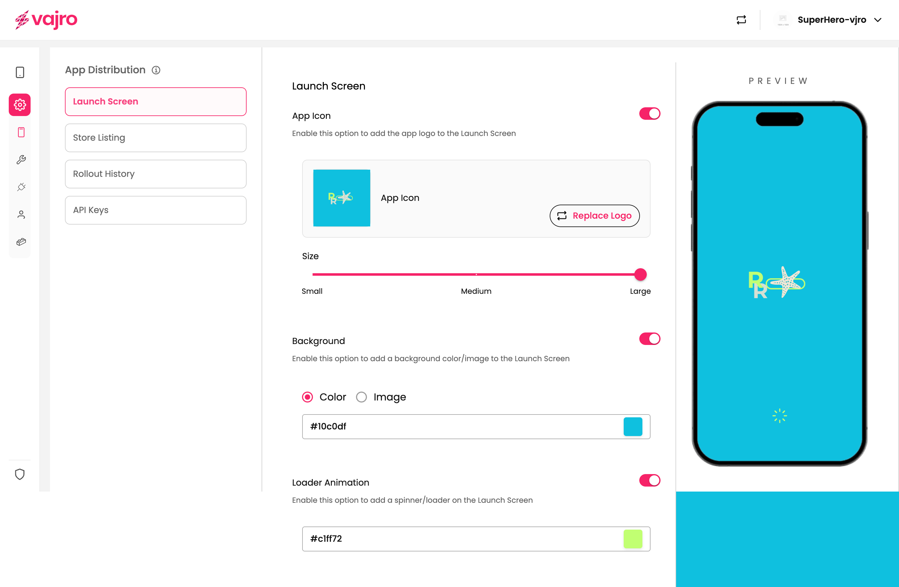 Log into your Supefans dashboard and go to App Distribution → Launch Screen.