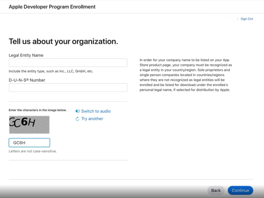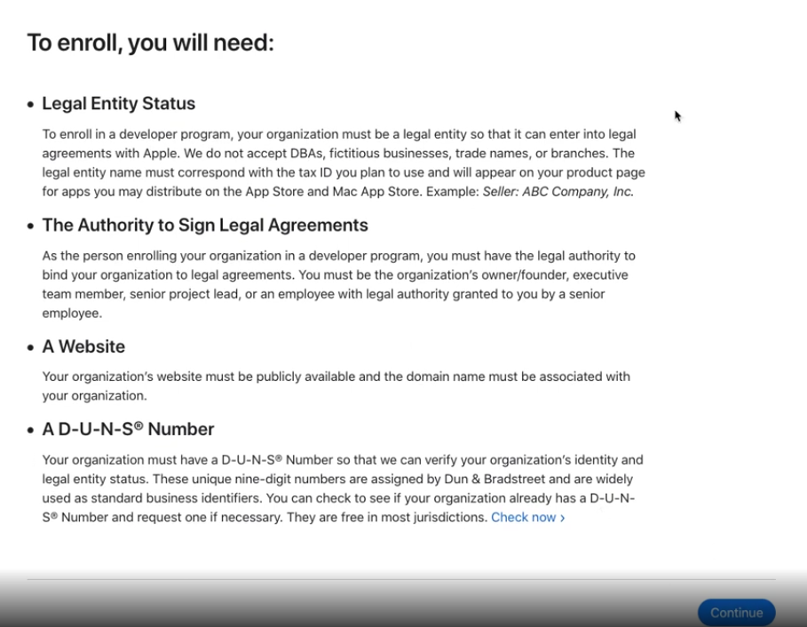 Note: If you want to bypass the DUNS number just sign up as an Individual. Remember that your name will appear as the developer in the iTunes store.