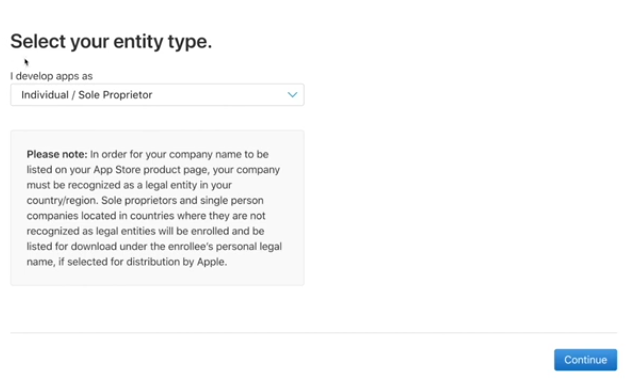 If you're an individual or sole proprietor/single-person business, follow these steps to enroll in the Apple Developer Program on your iPhone or iPad.