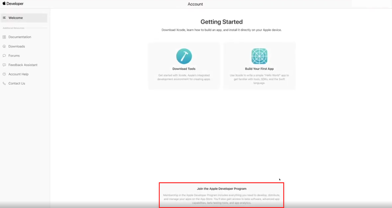 Step 3: You'll be redirected to the Apple Developer dashboard. Click on Join the Apple Developer program section.