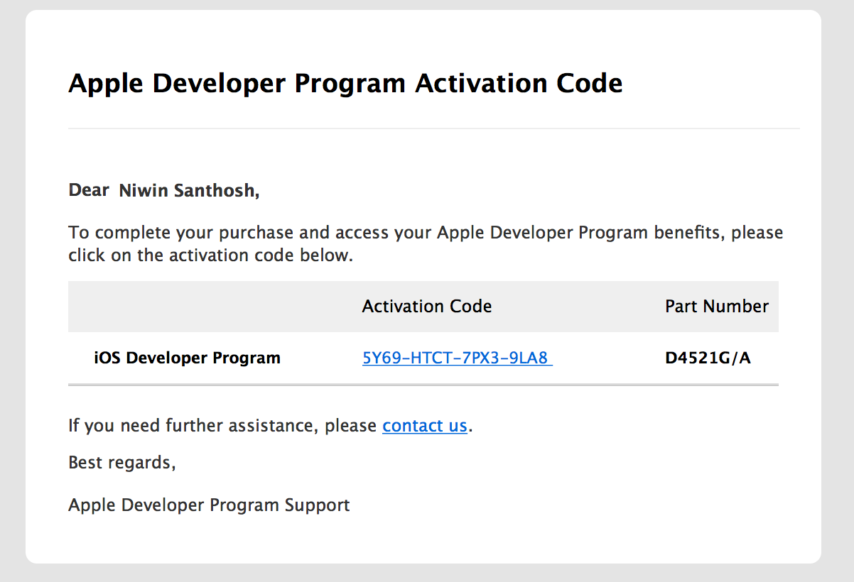 Once your payment is complete, within 48 hours you will receive an e-mail from Apple requesting you to activate your account. Click the link in the email to activate it.