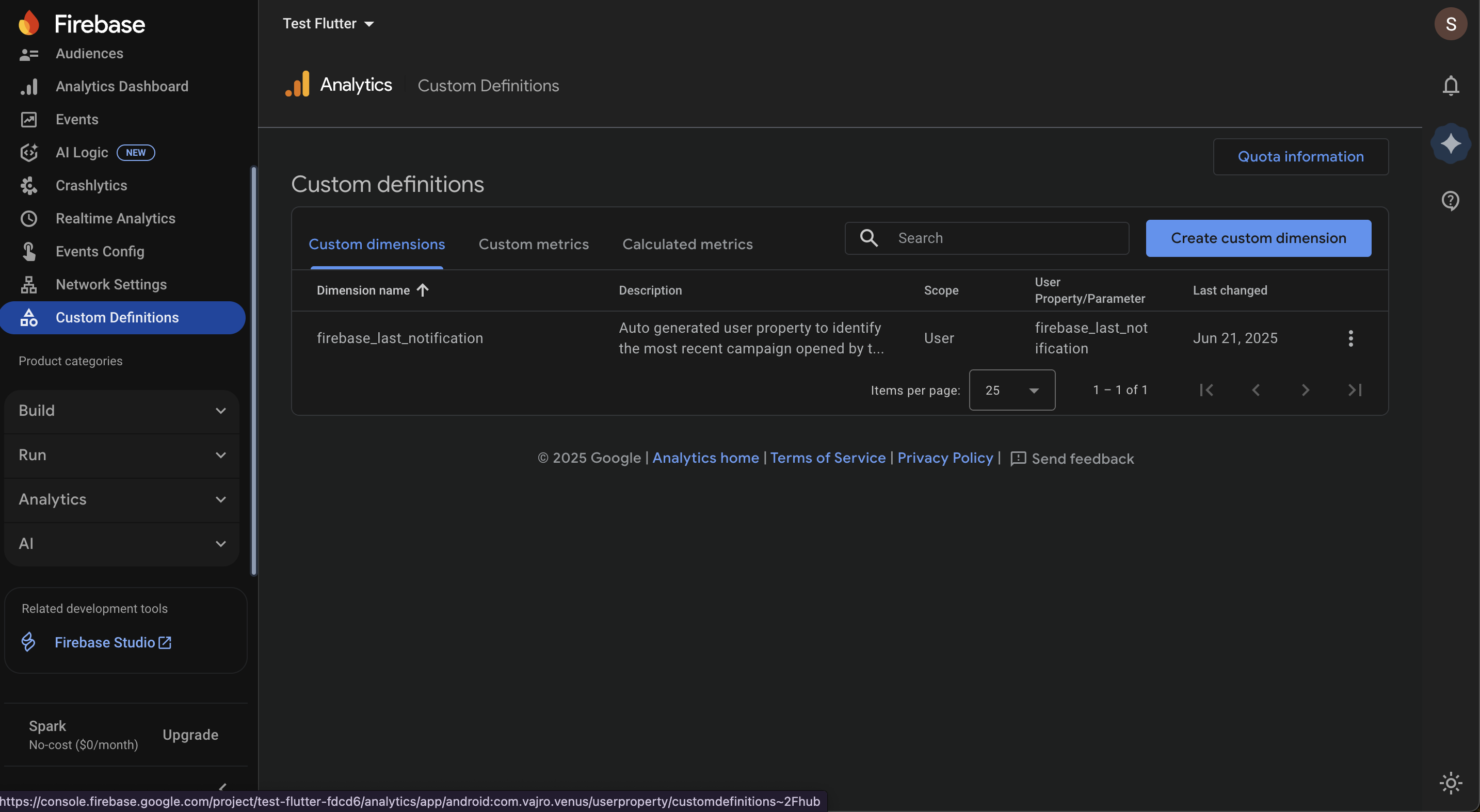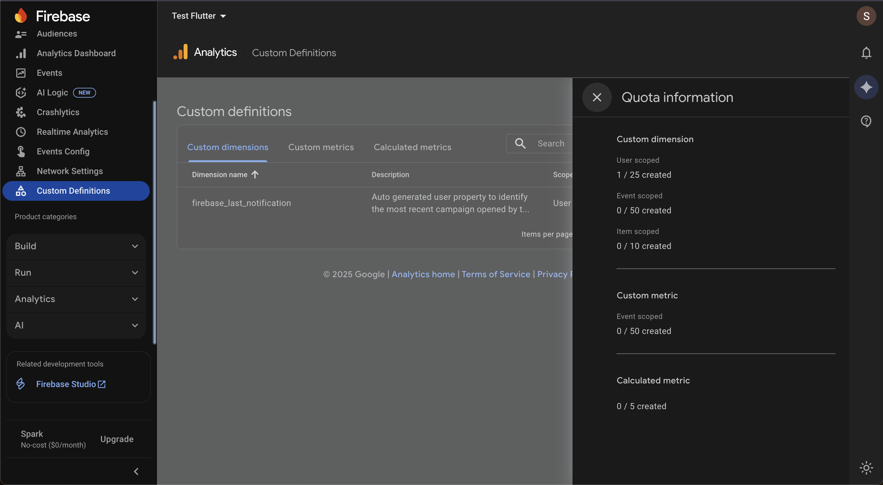Firebase places a limit on the number of custom definitions you can create. It is important to monitor your quota to ensure you can create all the necessary definitions for your reporting needs.