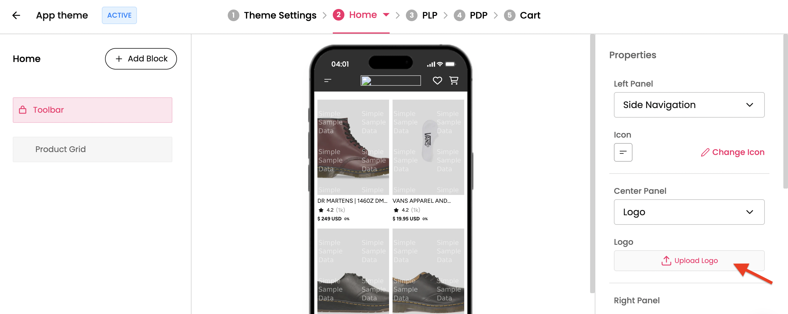 Step 4 : Upload the desired logo and it’ll appear on the Header of the app.
