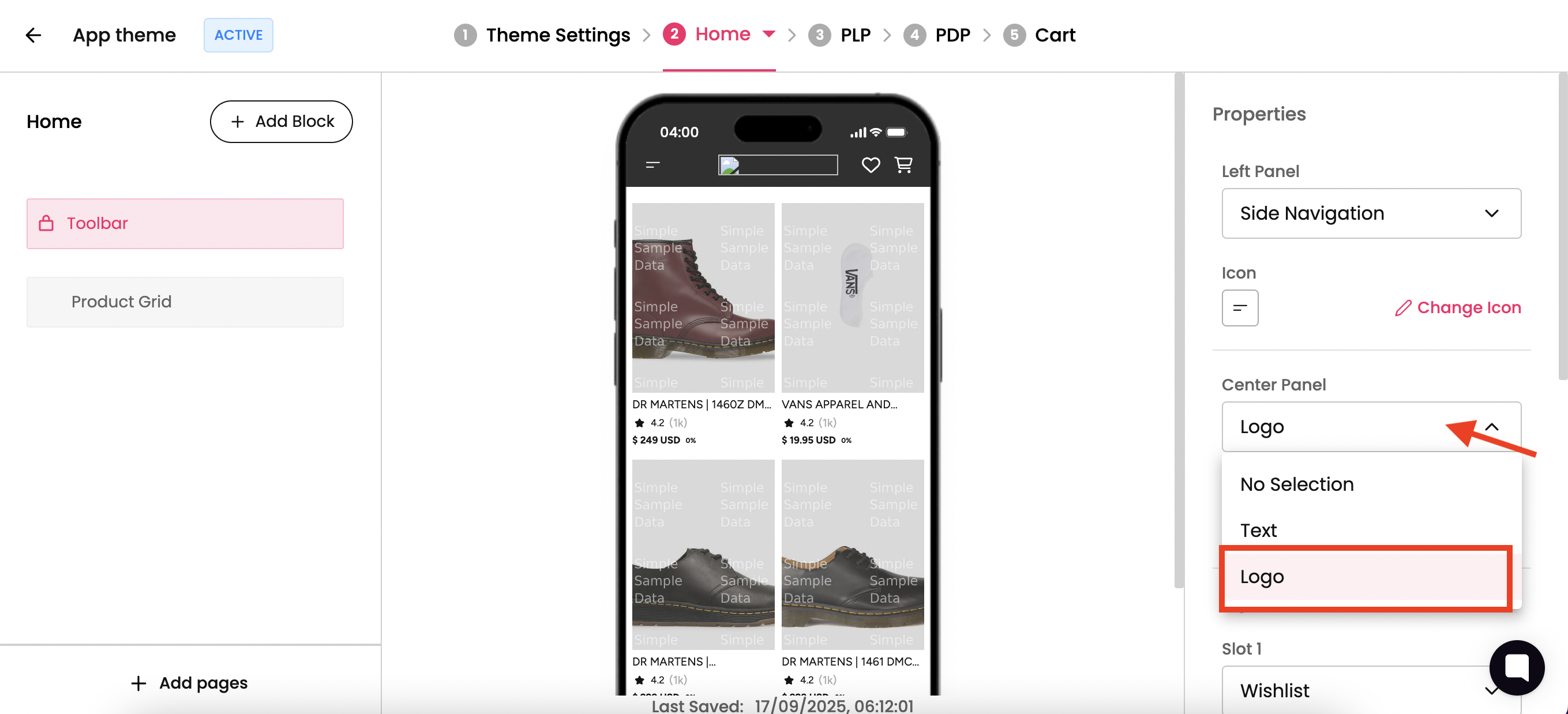 Step 3 : On the Right Panel, you’ll find the menu named “Central Panel” and select “Logo” from the dropdown menu.