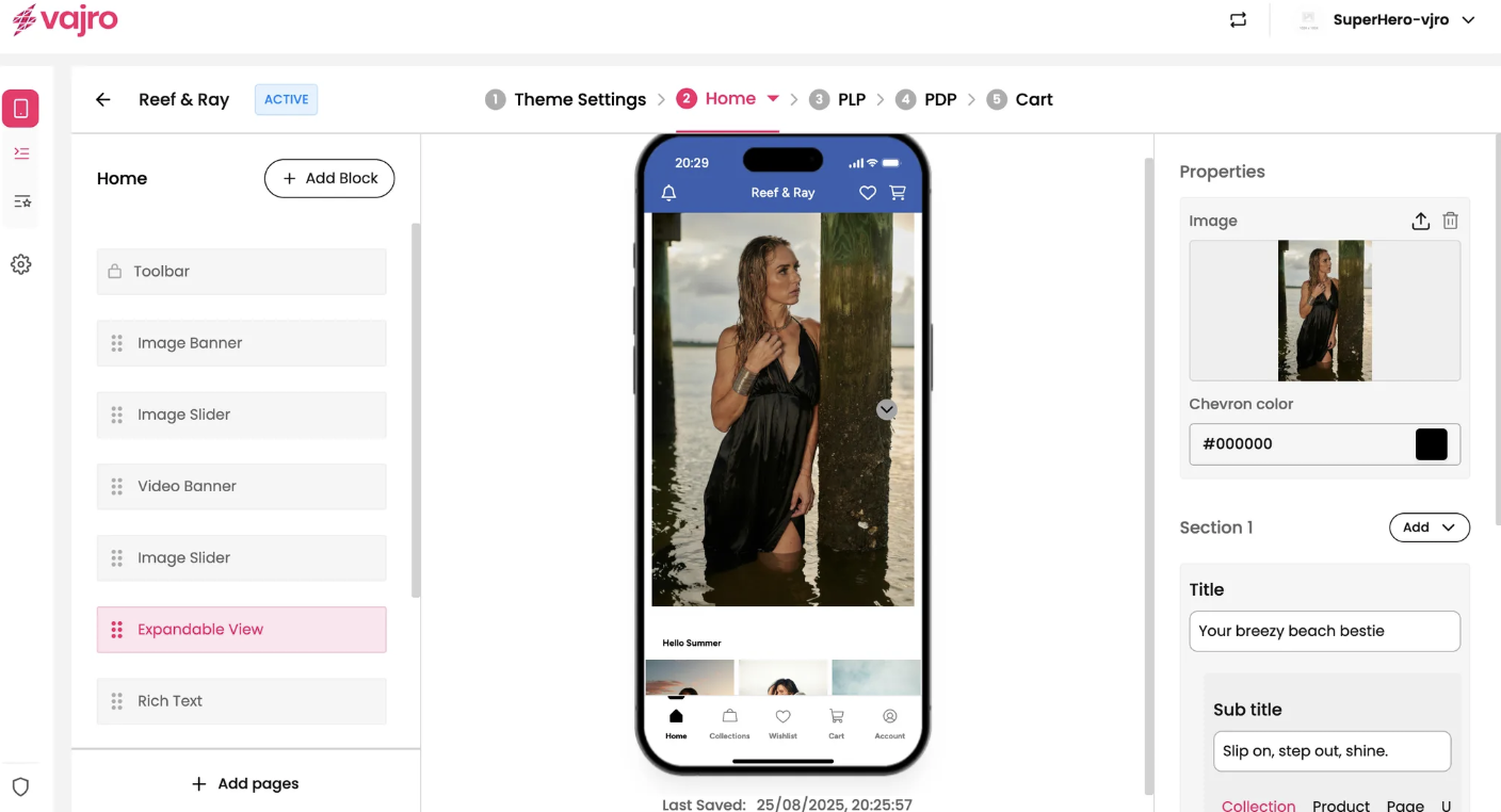Make the most of your app’s screen space with this versatile block. Display a single hero image while keeping details like product descriptions, collection info, or call-to-actions neatly collapsed, users can expand them with a single tap.