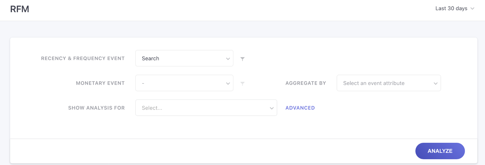 Monetary (M): Spend value, aggregated by event attribute (e.g., Cart Value).