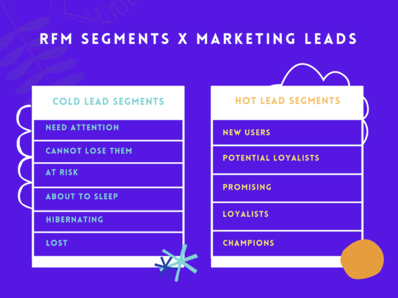 Scores users on Recency, Frequency, and Monetary Value (1–5).