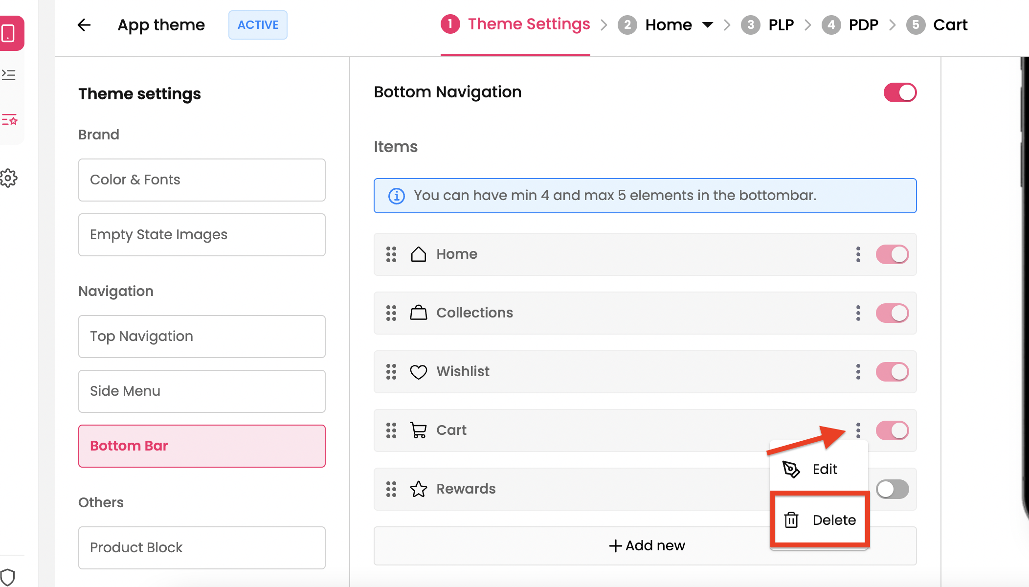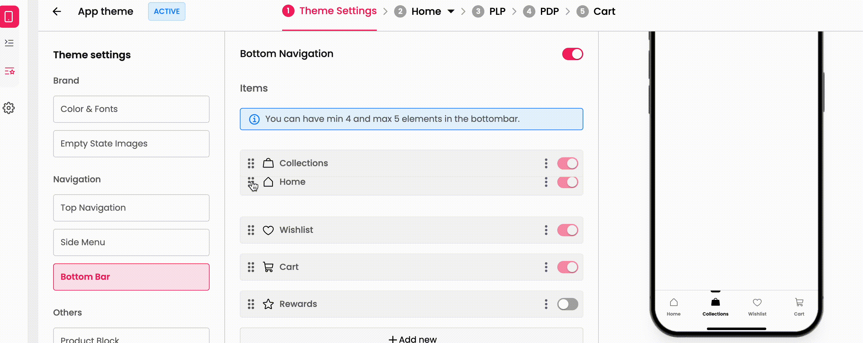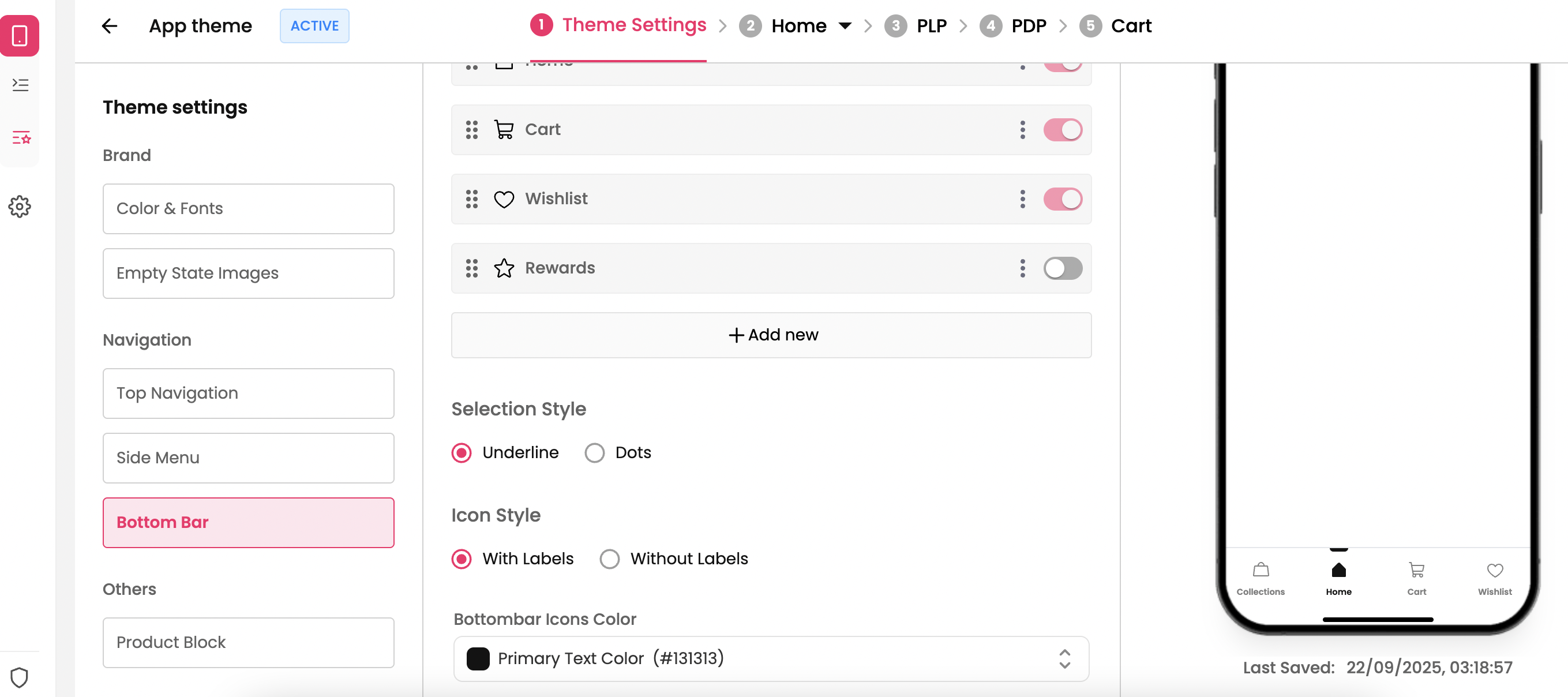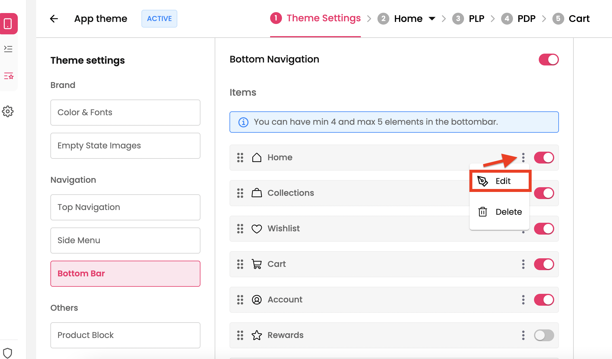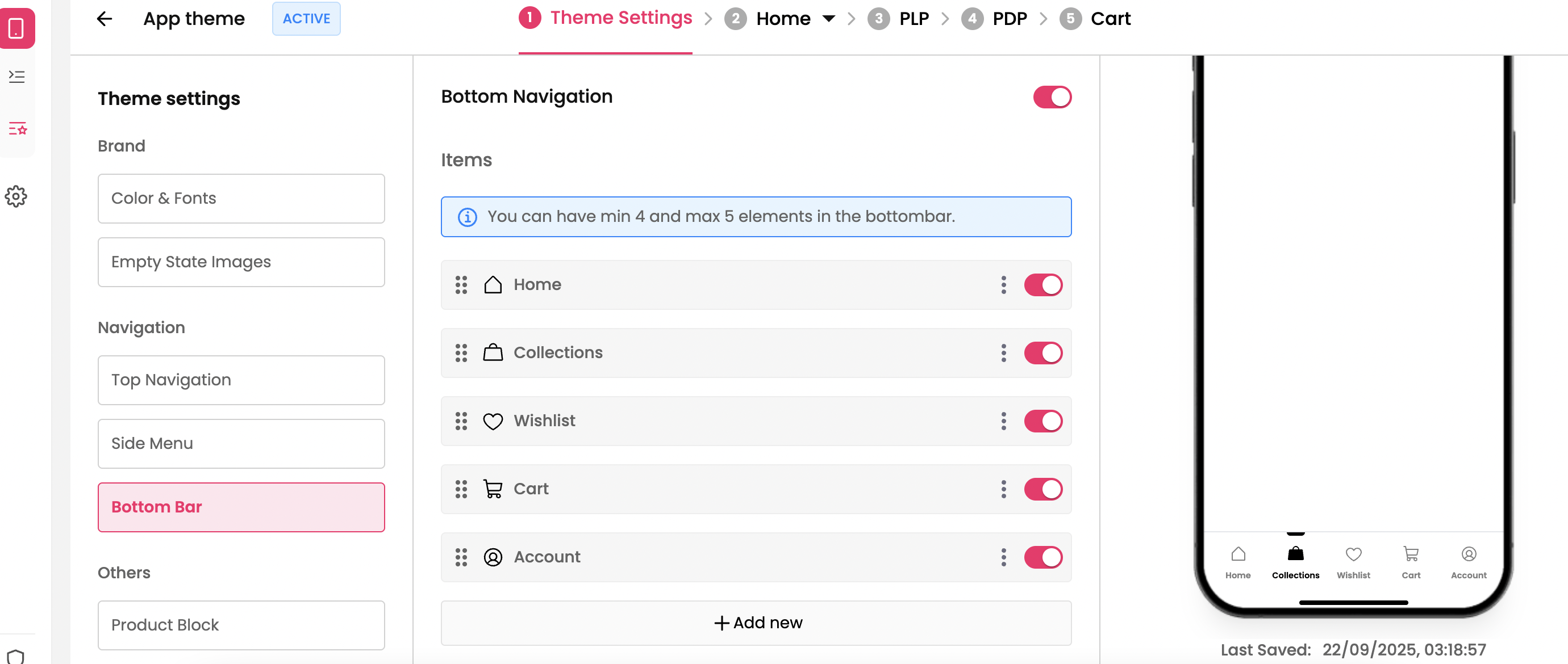 Step 4 : Customize the Bottom bar as needed on the mobile app.