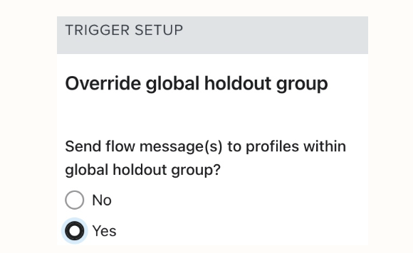 Override global holdout group = Deliver the message to everyone, even those who would normally be excluded under your global holdout experiment.