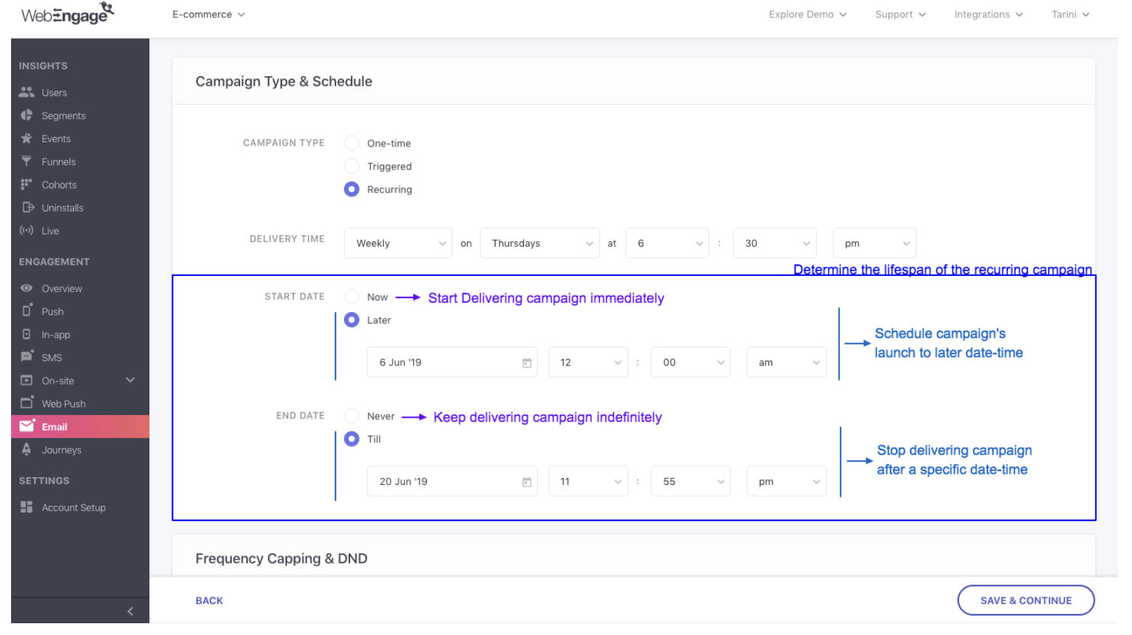You can also specify Start and End Dates for campaign activation and deactivation.