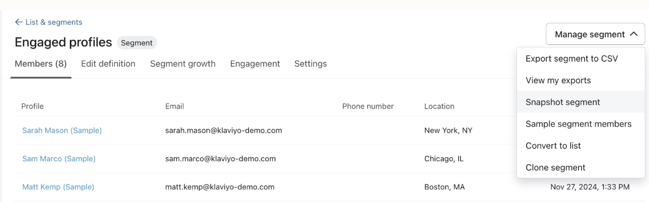 Examples: VIP customers, inactive subscribers, high lifetime value customers.