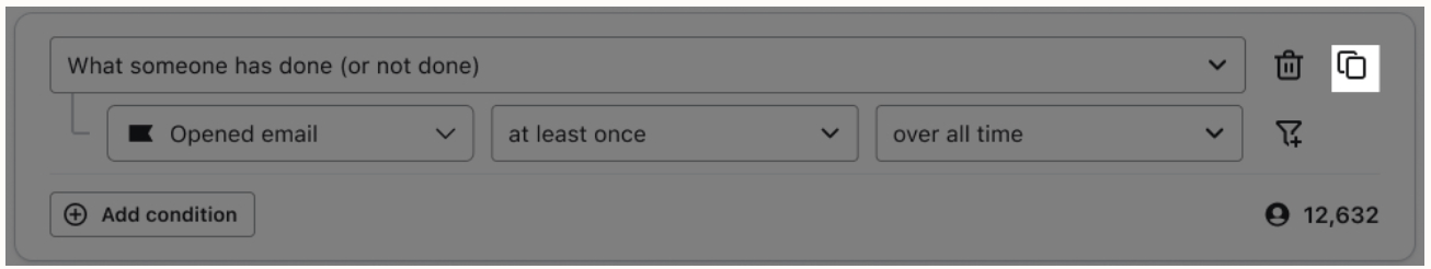 Click the clone icon in the builder to duplicate and edit conditions quickly.