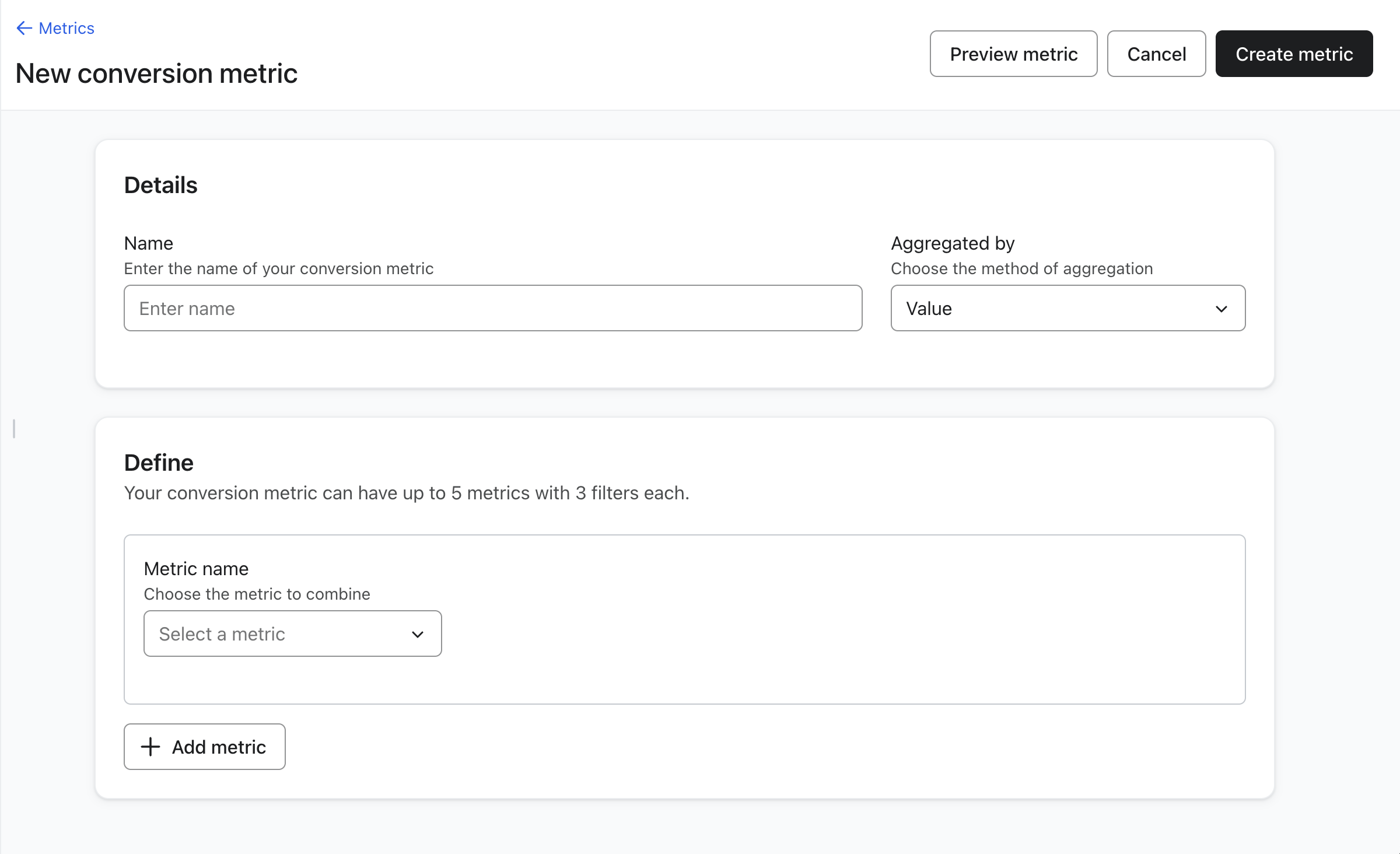 Name: Use a clear, specific label (e.g., “Orders from Campaign A” or “Revenue from Subscriptions”)